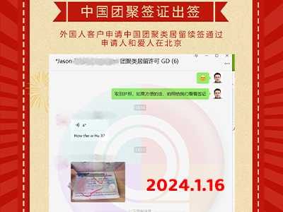 外國人申請中國團(tuán)聚類居留續(xù)簽出簽!